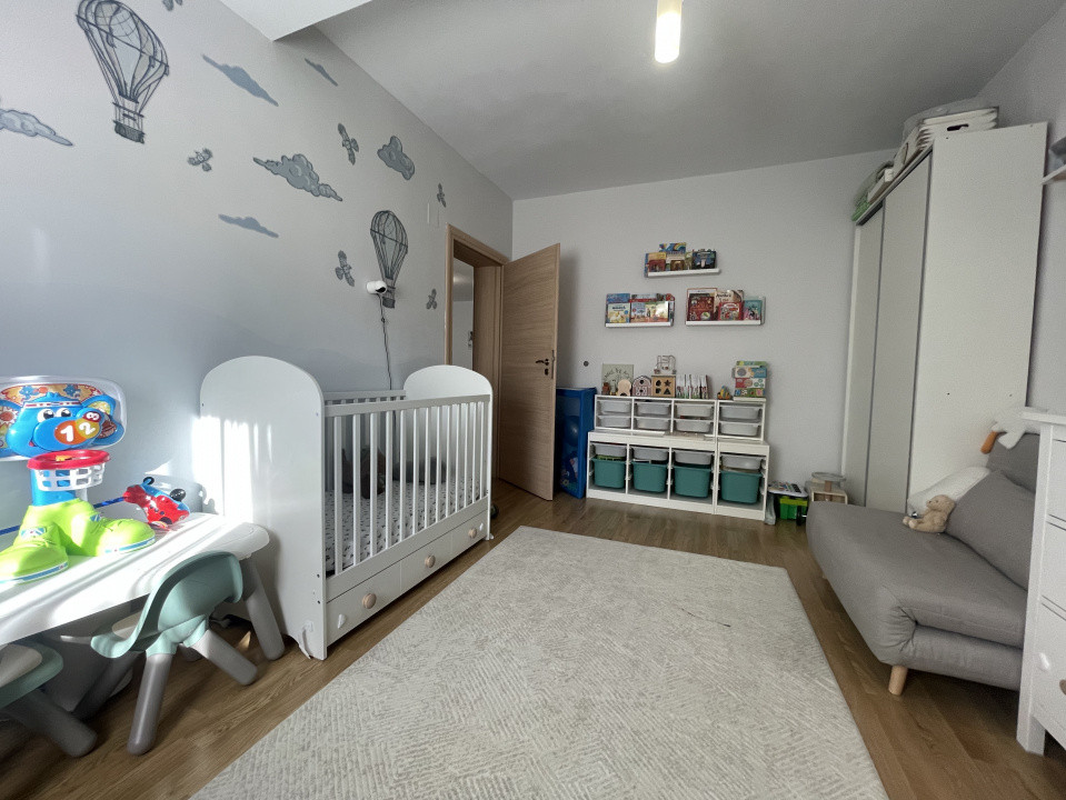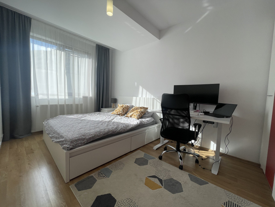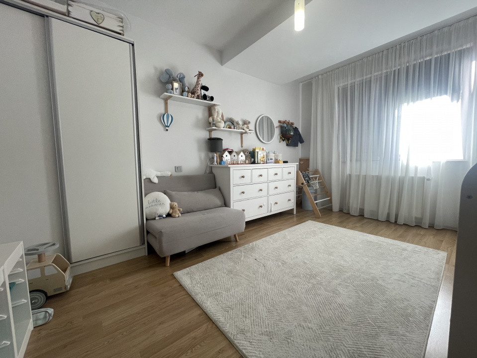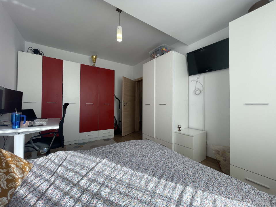 Dormitorul matrimonial este un refugiu de relaxare, mobilat cu un pat matrimonial confortabil, dulapuri spațioase și elemente decorative discrete, iar cel de-al doilea dormitor poate fi amenajat ca o cameră pentru copii, birou sau cameră de oaspeți, în funcție de preferințele tale.