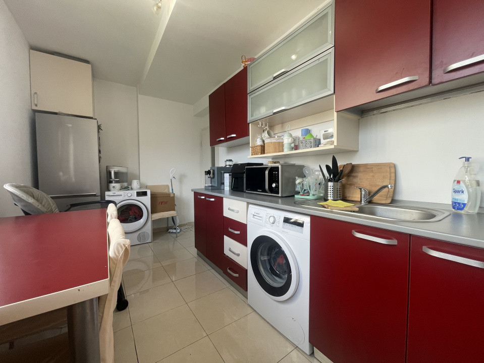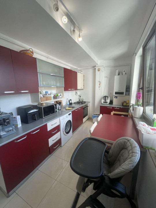Bucătăria, separată și complet echipată, îmbină funcționalitatea cu stilul. Mobilierul în nuanțe calde și electrocasnicele bune oferă un loc perfect pentru a pregăti și savura mesele în familie. Blatul din material rezistent și spațiile de depozitare generoase îți oferă tot confortul de care ai nevoie.